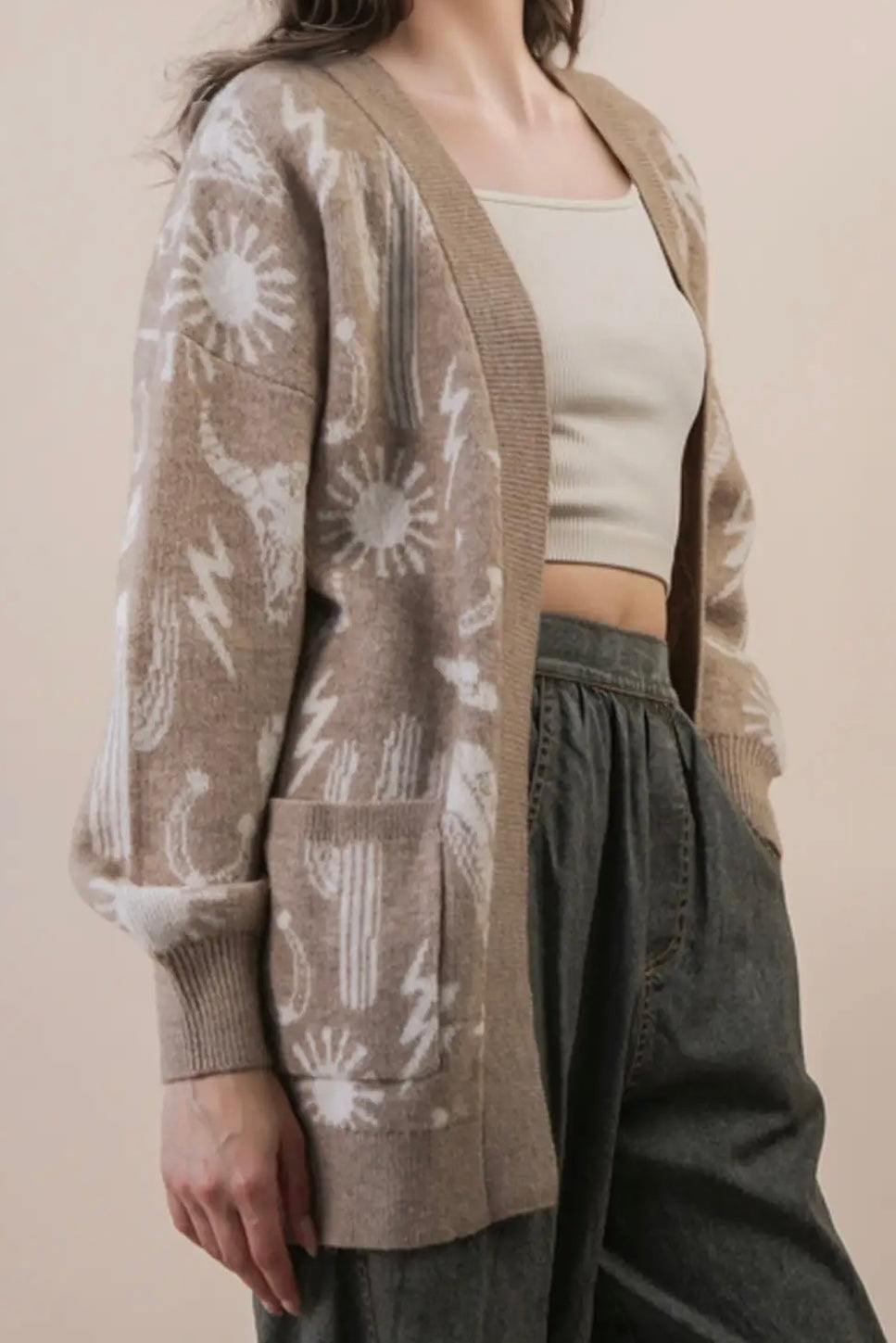 Oversized Western Cardigan- Mocha
